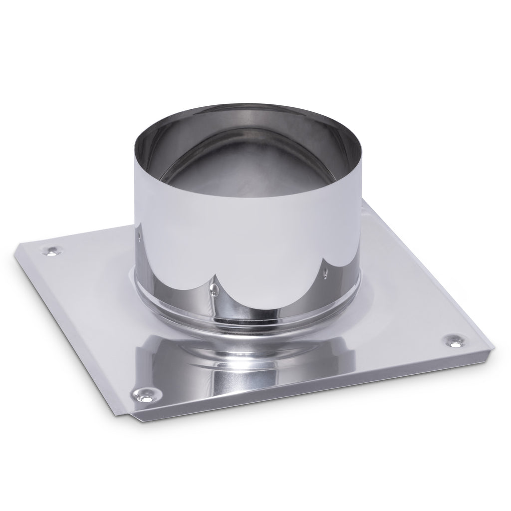 BCA150 – Basadapter för montering av CWL roterande skorstenshuvar. Tillverkad av högkvalitativt rostfritt stål (klass 1.4404, tjocklek 0,6 mm) med utmärkt hållbarhet och korrosionsbeständighet. Med justerbara monteringshål för säker installation på olika skorstenstyper.
