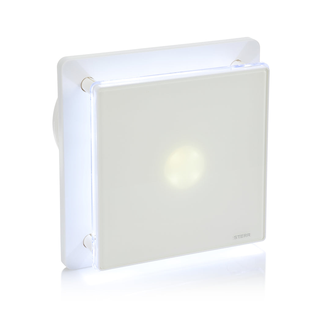 BFS125LH – Tyst badrumsfläkt med LED-belysning och fuktsensor som ger automatisk ventilationskontroll med dekorativ atmosfär för badrum och toaletter.